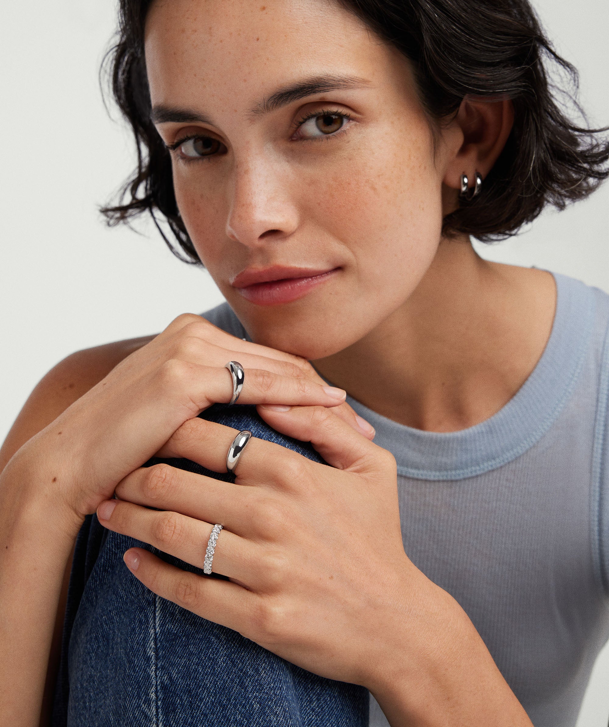 Our 14k gold pieces are made to last and perfect for everyday wear. Each piece is crafted from 94% recycled gold. 14k white gold pieces are finished with rhodium plating, giving them their signature color along with added shine and durability.