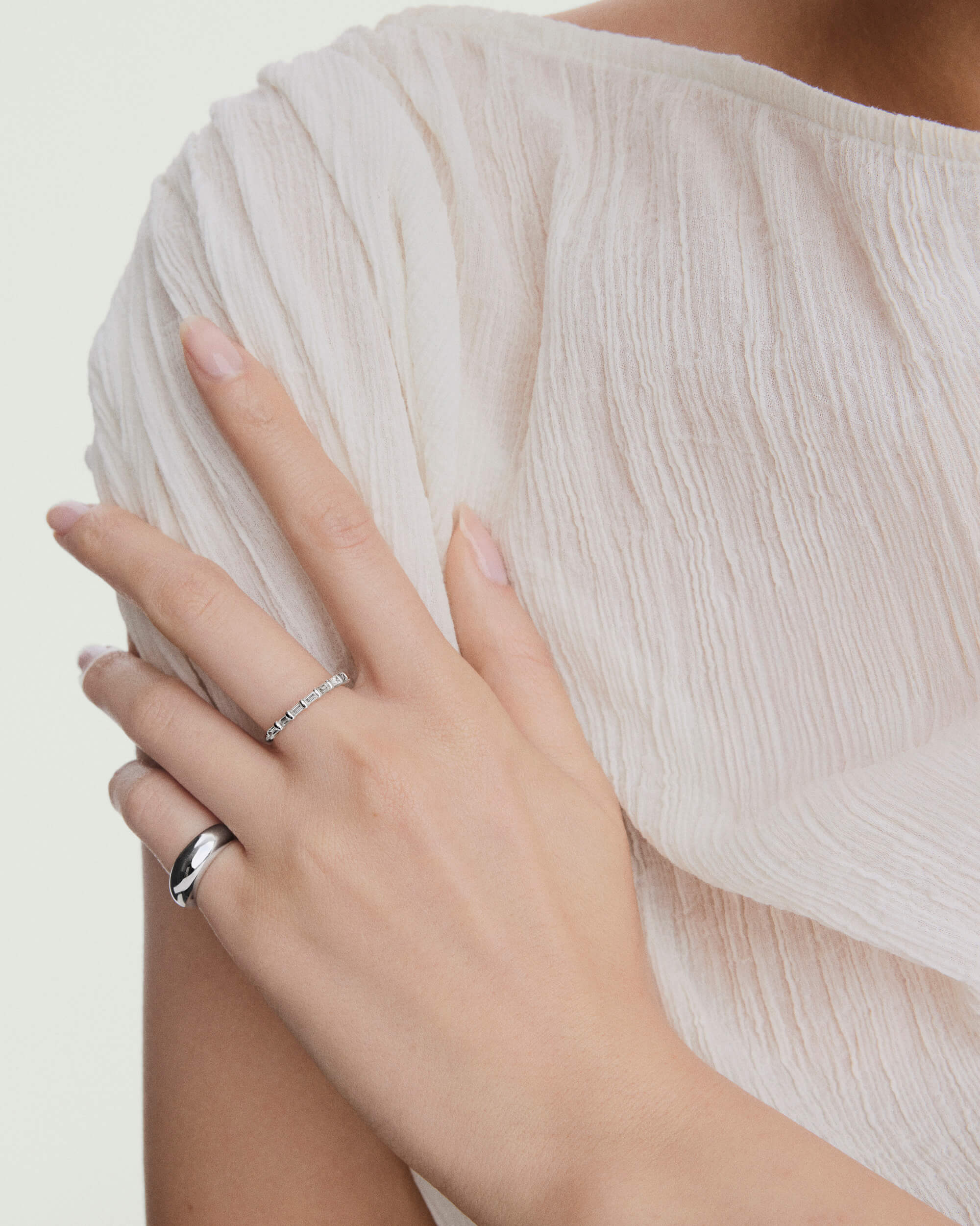 Discover Mejuri’s 14k Gold Baguette Diamond Half Eternity Band. This timeless band features eight Kimberley Process compliant baguette diamonds, handcrafted for a refined and elegant look.
