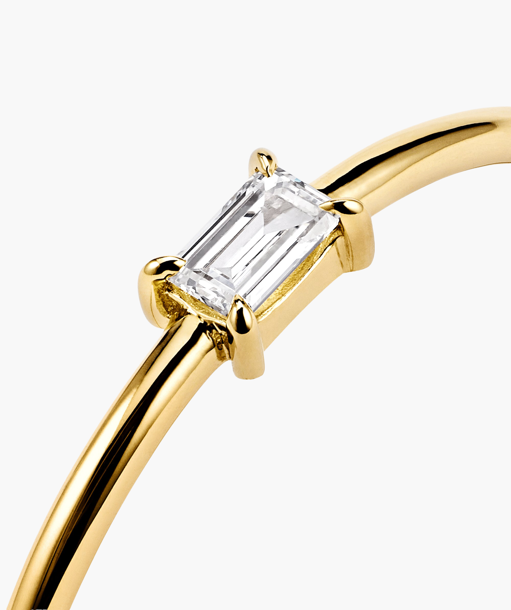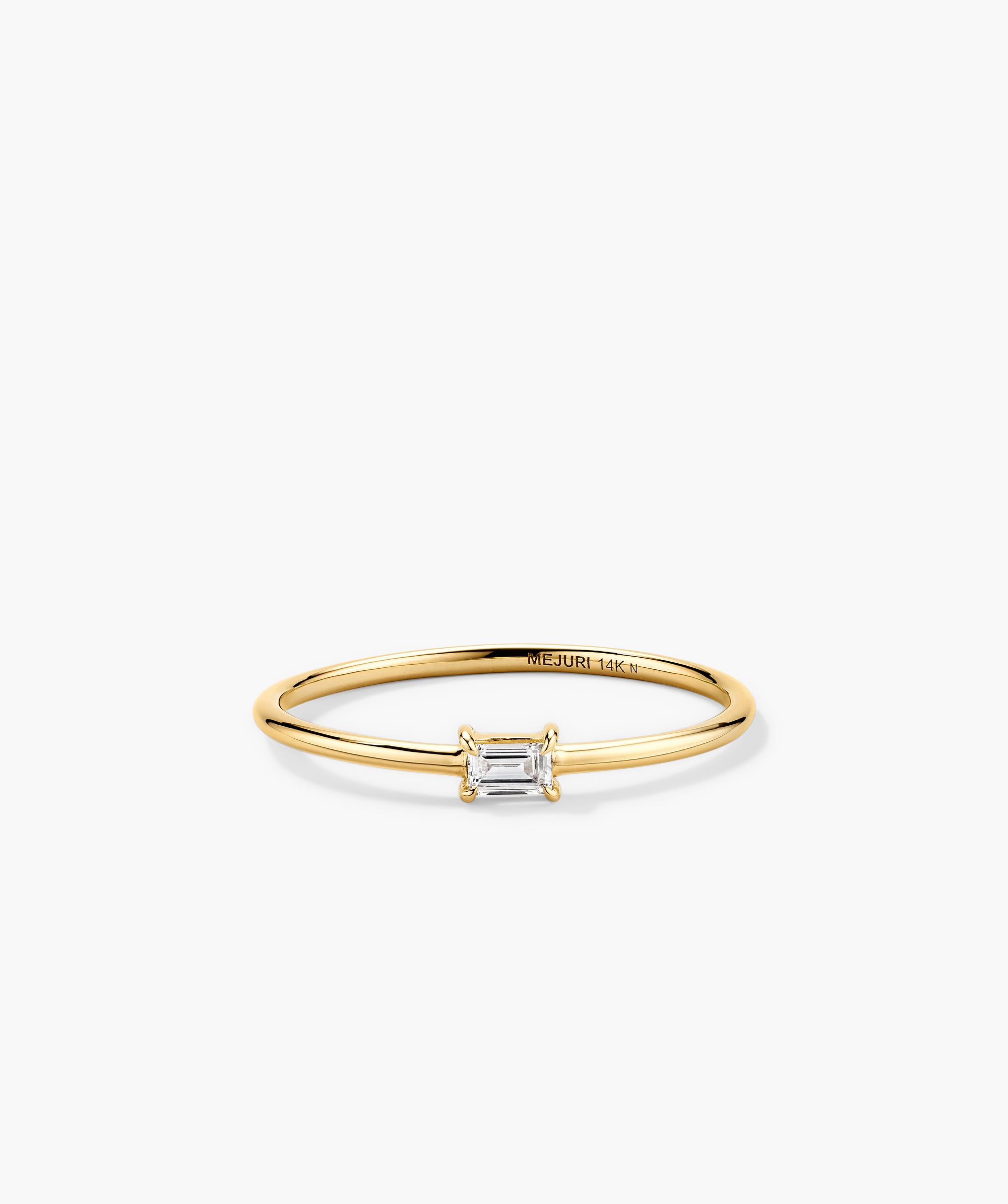 Baguette Diamond Stacker Ring– Average Carat Weight: 0.014 ct– Stone Size: 3 mm x 2 mm– Shank Width: 1 mm