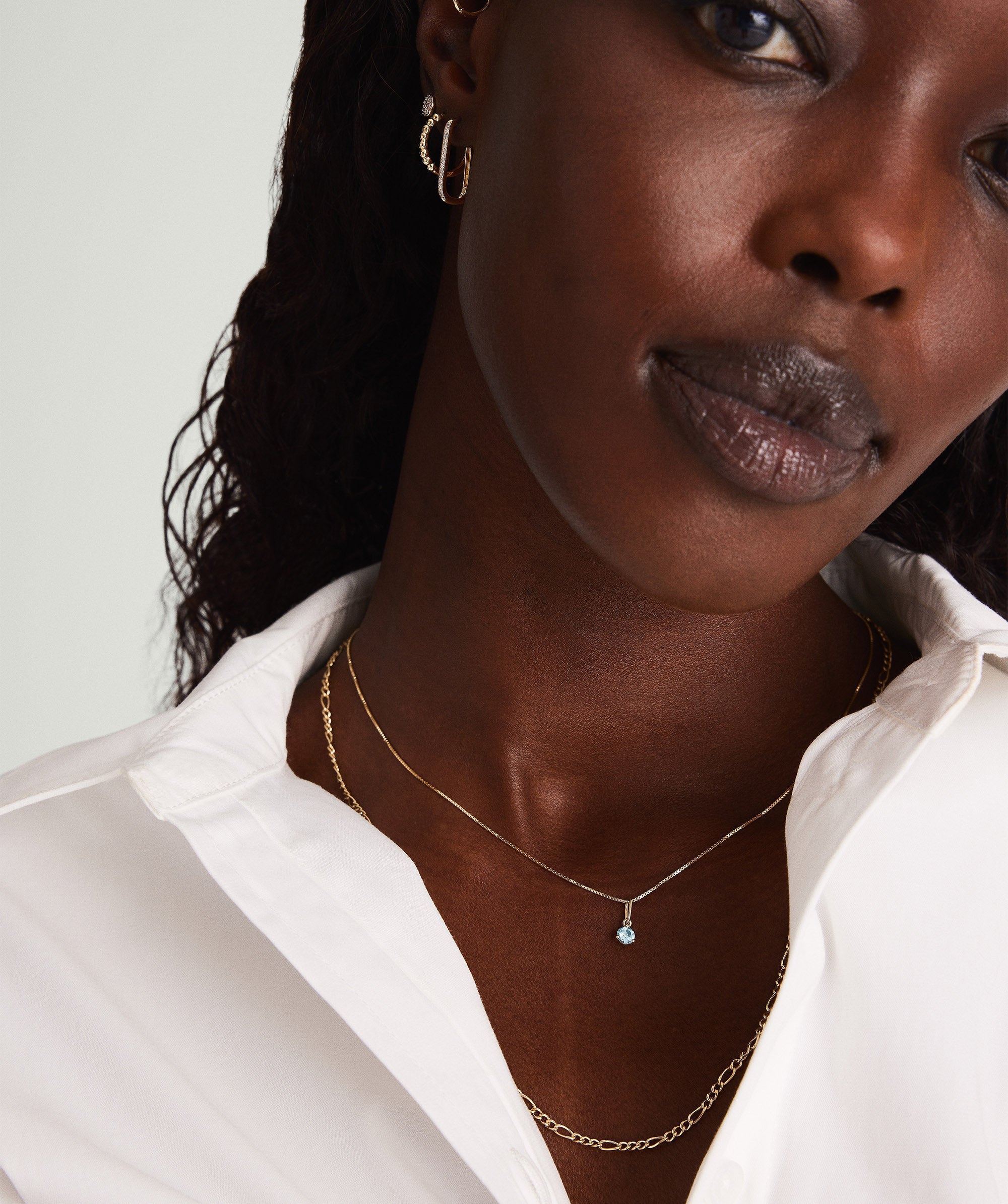 Our 14k gold pieces are made to last and perfect for everyday wear. Each piece is crafted from 94% recycled gold. 14k white gold pieces are finished with rhodium plating, giving them their signature color along with added shine and durability.