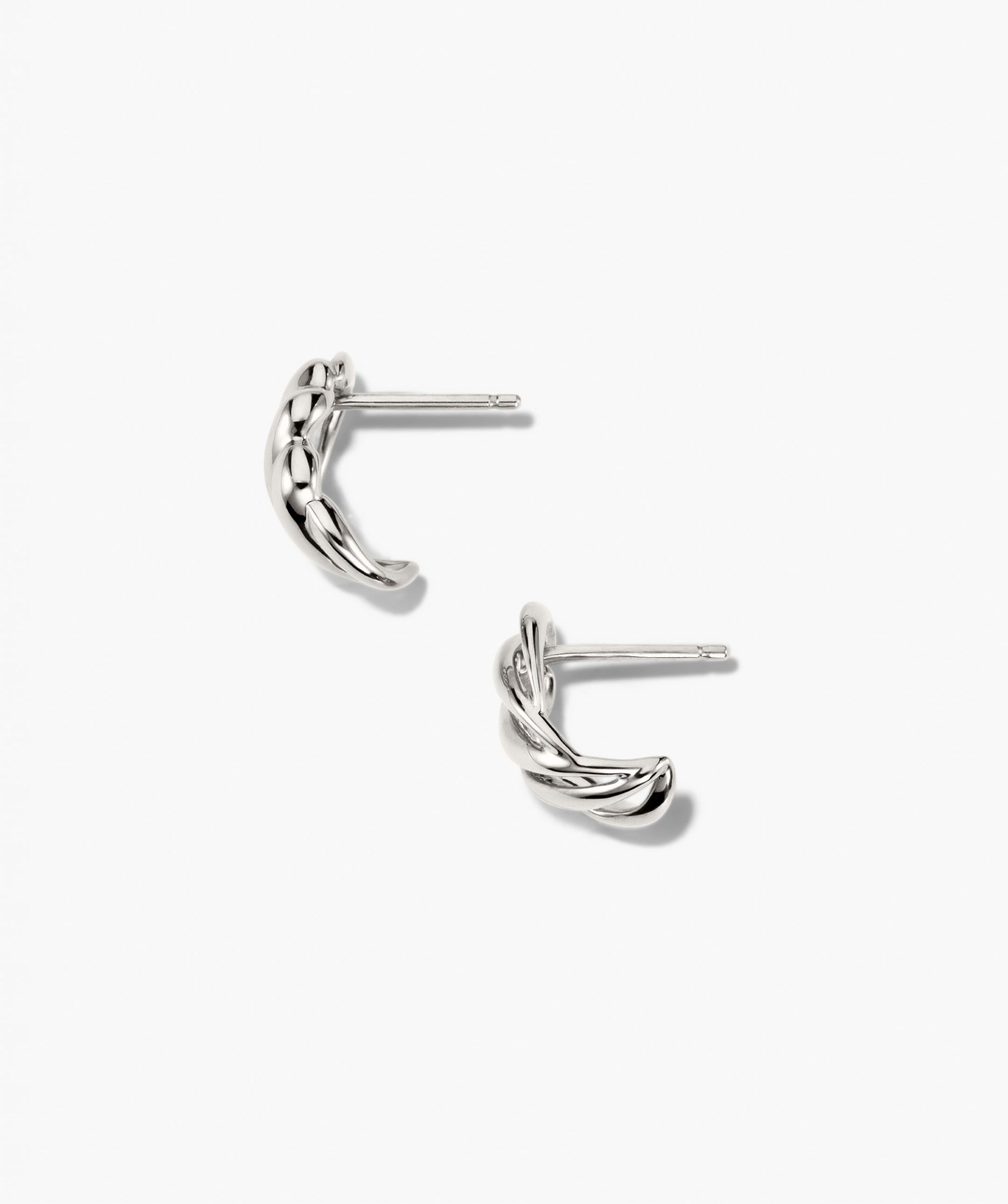 Understated, textured, and eye-catching. These huggies mix open space with an asymmetrical design for earrings you’ll never want to take off.