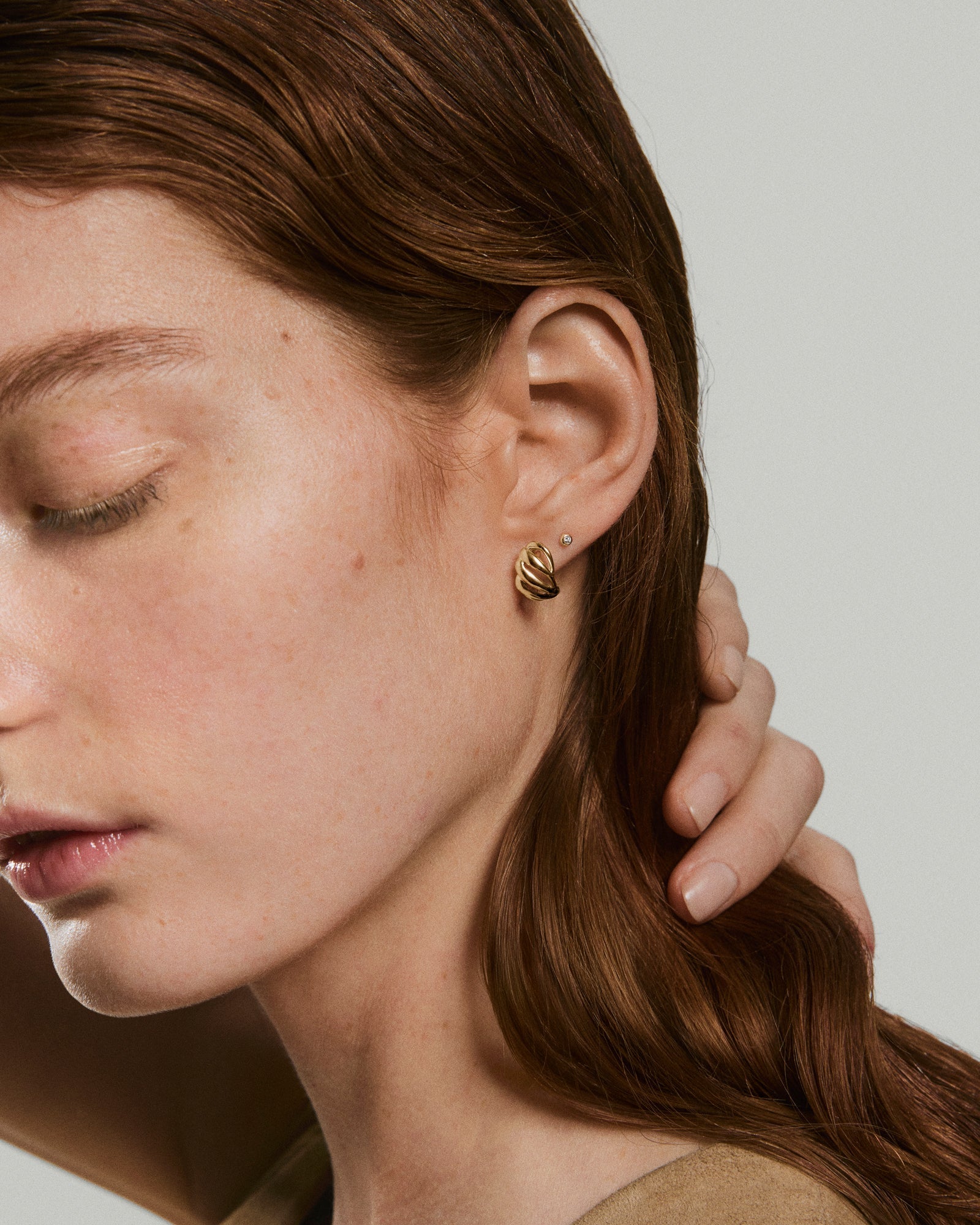 Understated, textured, and eye-catching. These huggies mix open space with an asymmetrical design for earrings you’ll never want to take off.