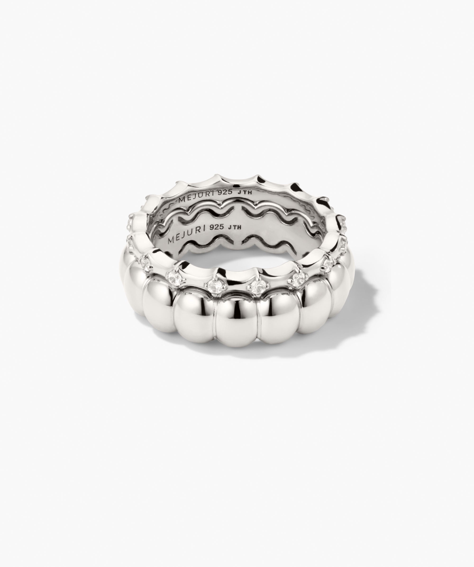 Looking sharp. This sculptural ring plays with contrastcurved edges, delicate sapphires, and serious stacking potential.