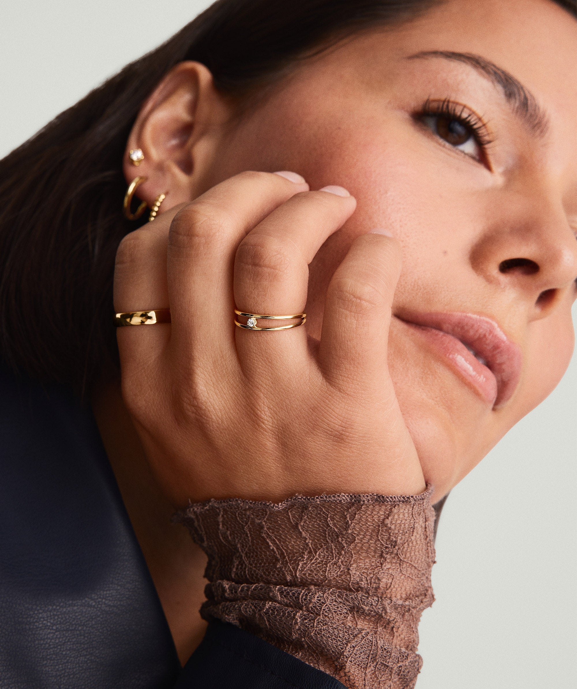 Double the stares, double the impact with Mejuri’s 14k Gold Responsibly Sourced Diamond Double Stacker Ring. This handcrafted ring features a responsibly sourced diamond sandwiched between two sleek bands for a sparkling, elegant look.