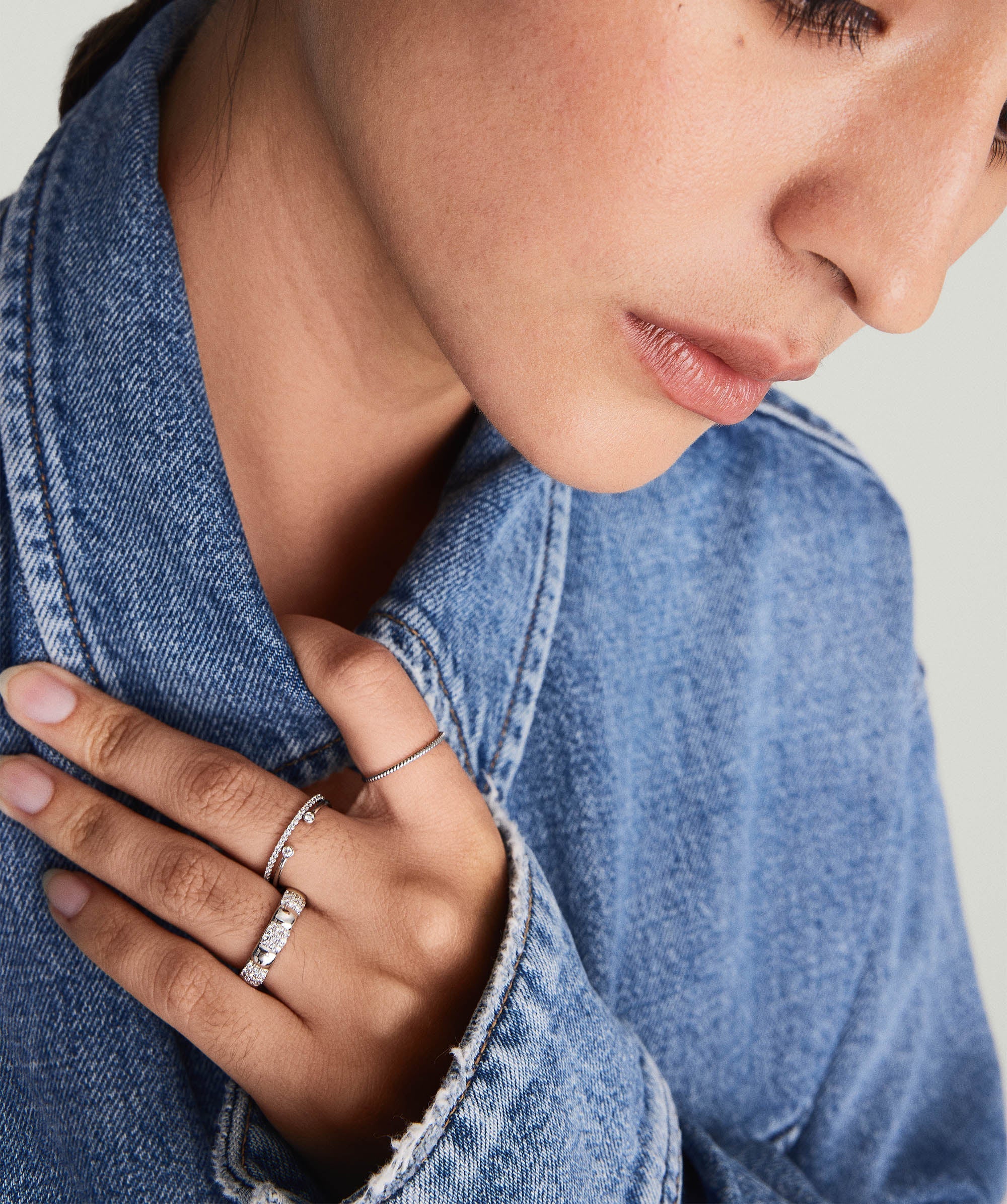 Two is better than one. Mejuri’s 14k White Gold Diamonds Open Ring features 0.03 carat responsibly sourced diamonds in a bezel setting. The open design makes this ring stand out, even when stacked with other rings like the Stacker, Twist, or Beaded Rings.
