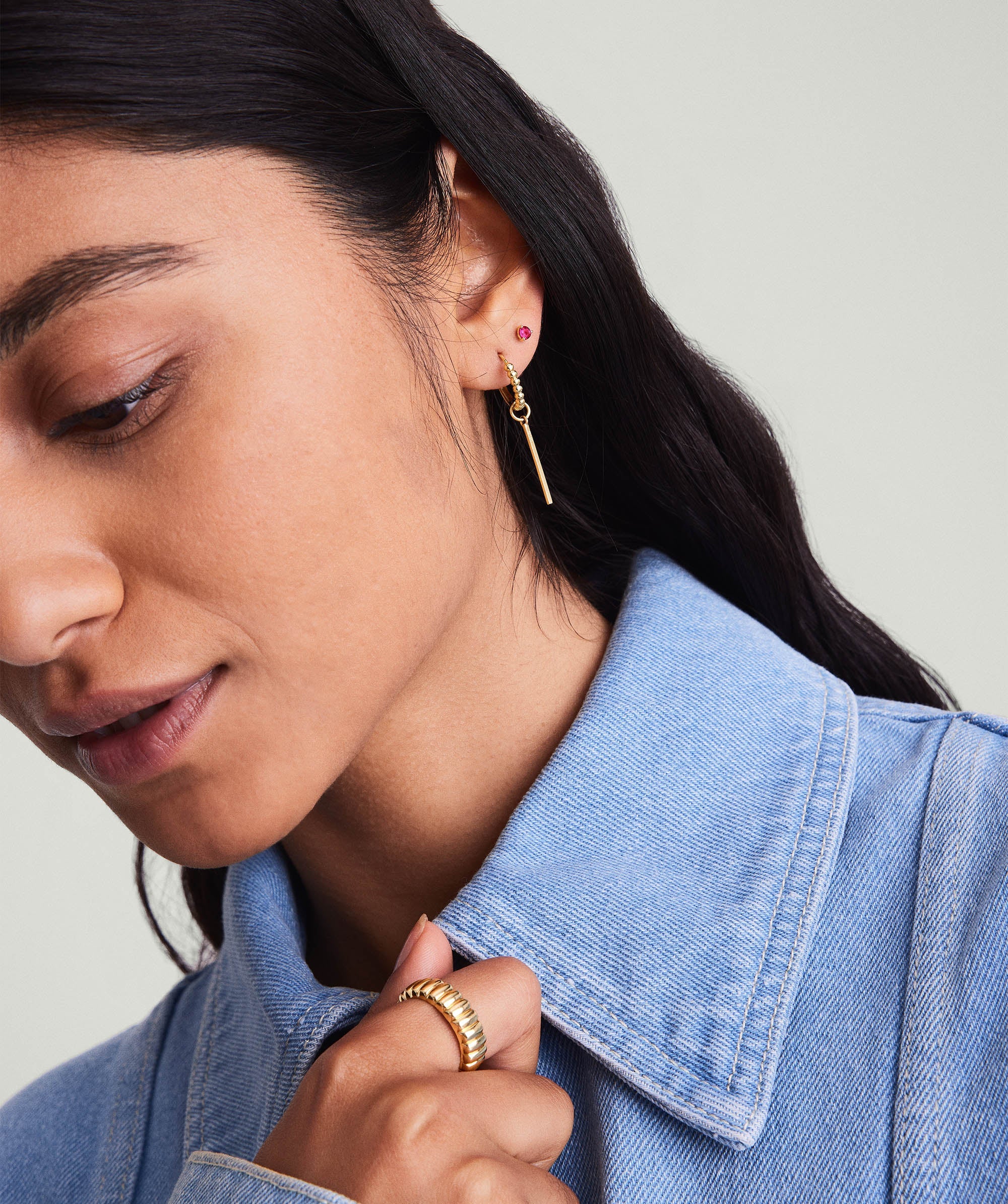 Our 14k gold pieces are made to last and perfect for everyday wear. Each piece is crafted from 94% recycled gold. 14k white gold pieces are finished with rhodium plating, giving them their signature color along with added shine and durability.