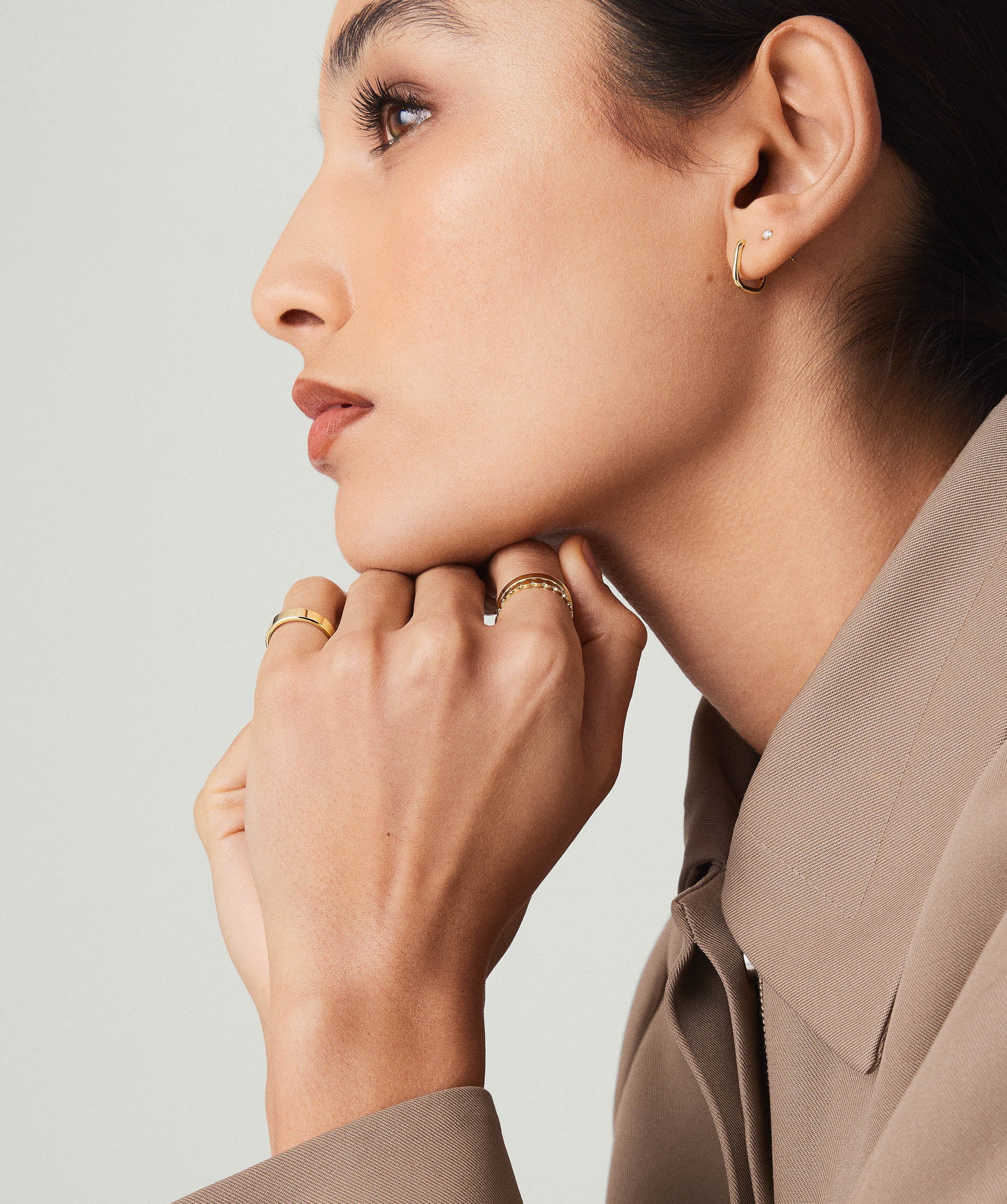 It’s okay to be squarish when it looks like this. Add some dimension to your ear stack with Mejuri’s Handcrafted Huggie U Hoop Earrings, set with responsibly sourced diamonds. A sparkling addition to any jewelry collection.