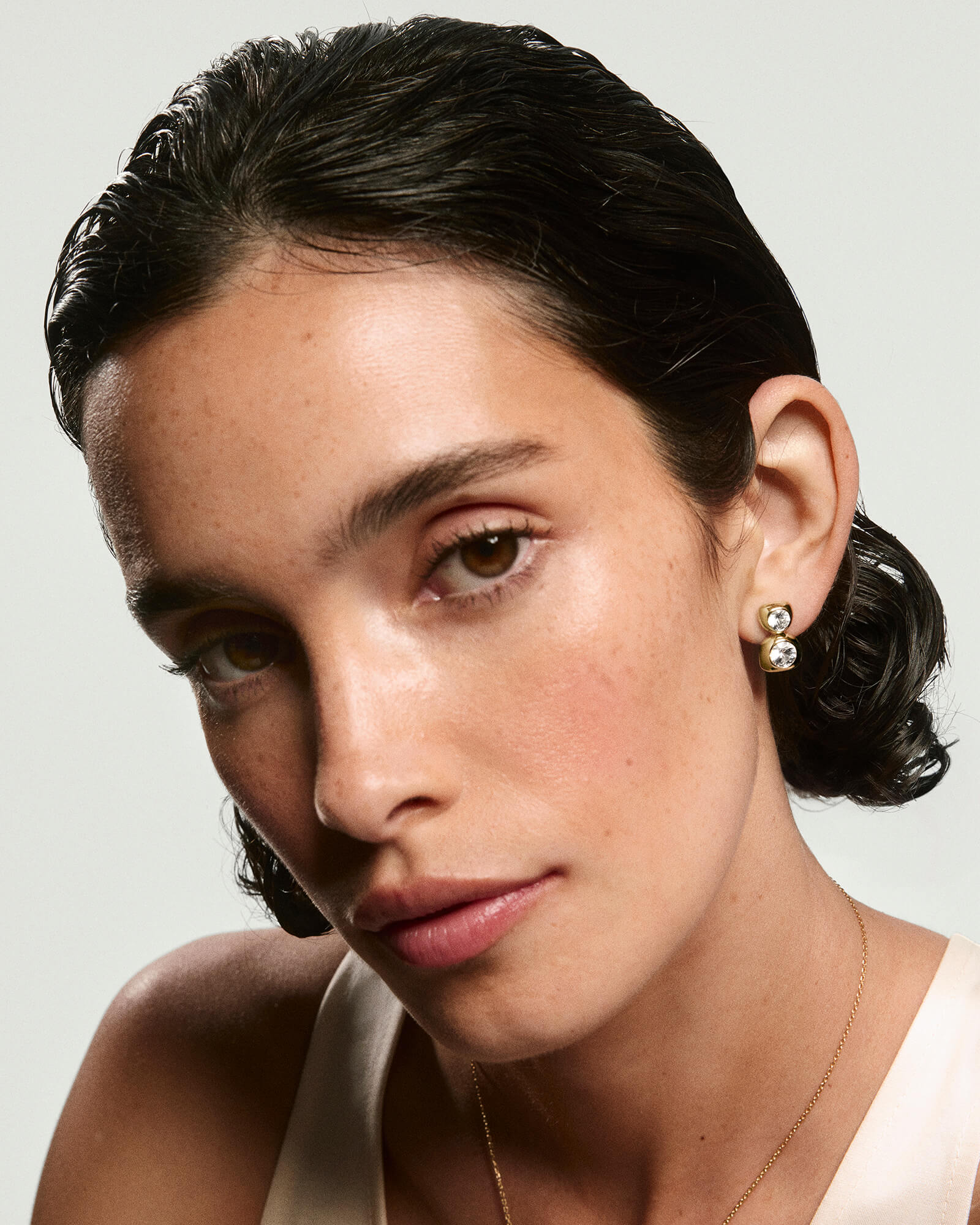 The Inès Drop Stud features oversized lab grown sapphires in a sleek, organic setting. The drop stud offers subtle movement (not too much) and not-so-subtle sparkle (never too much).