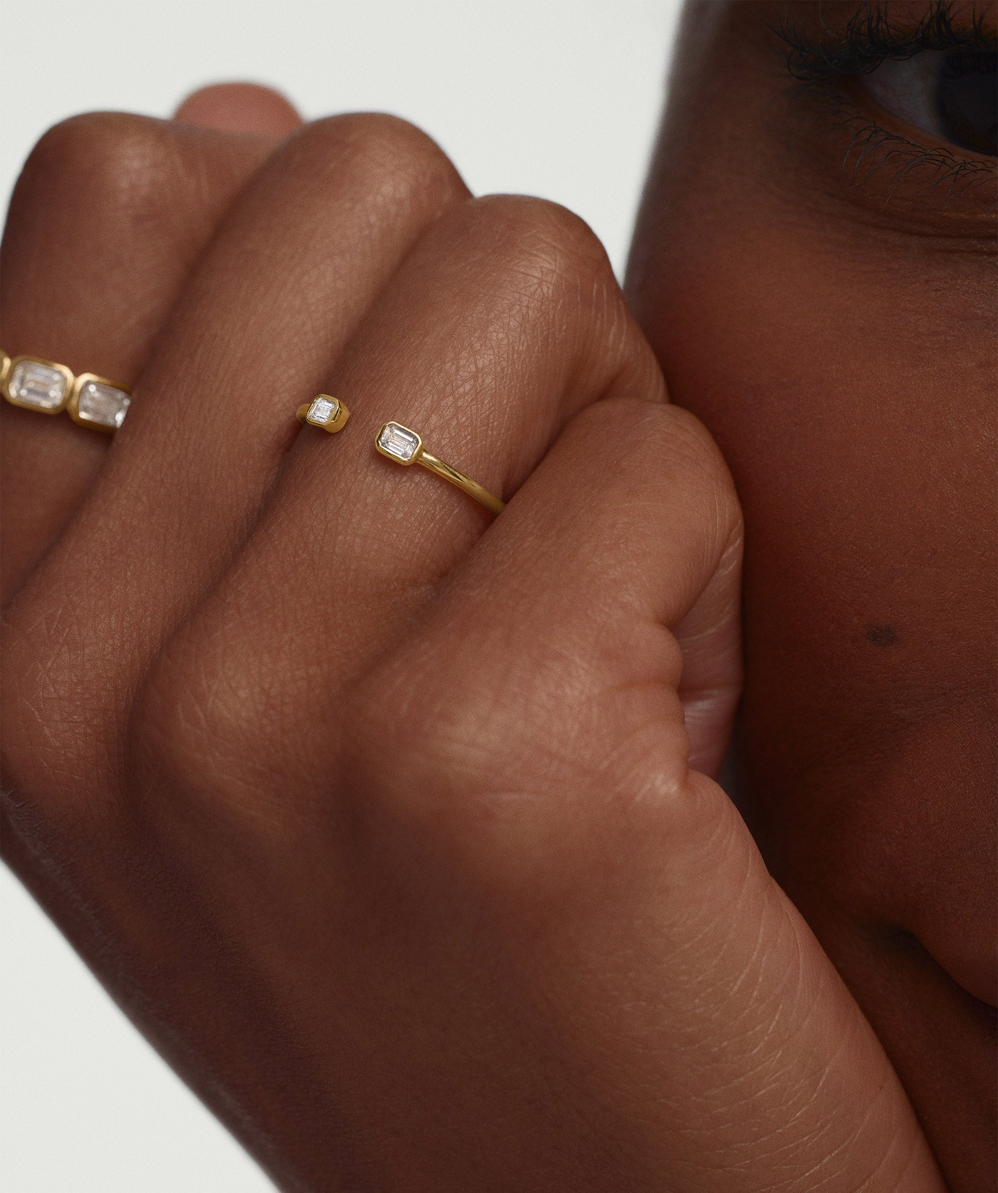 Open up a world of possibility with the Open Ring in lab grown diamonds. Featuring a bold emerald cut and an invitation to style in countless ways.