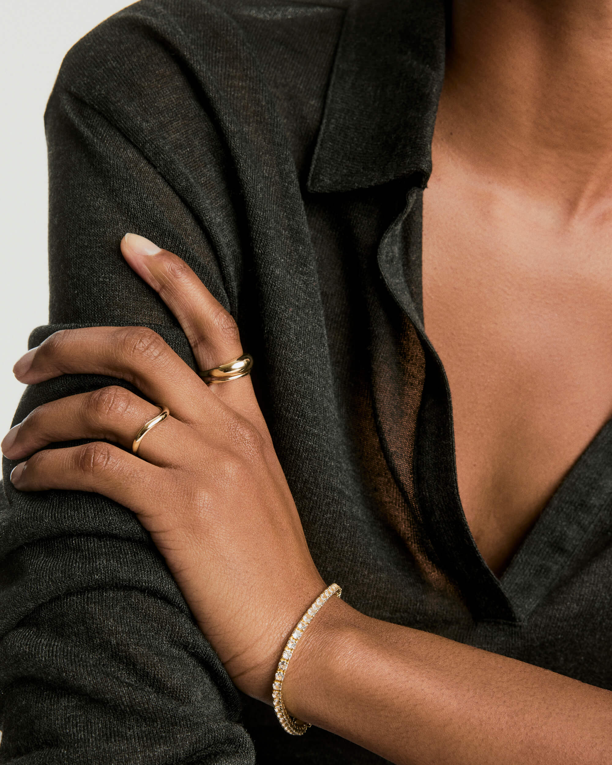 Of course you play tennis. Prep your looks with lab grown sapphires. Mejuri’s Sterling Silver Handcrafted Lab Grown Sapphire Tennis Bracelet features gemstones with the same chemical and physical properties as natural ones—and they sparkle just as nicely.