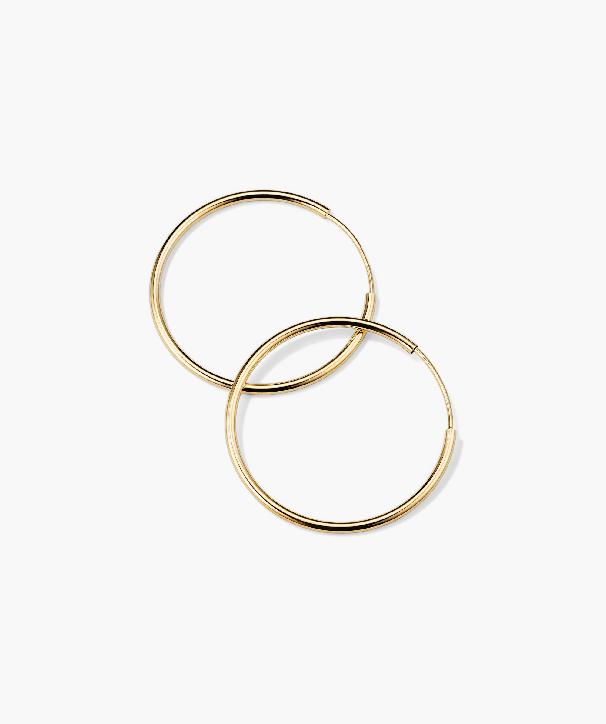 As basic as your white tee (seriously)! Mejuri’s Handcrafted Large Hoop Earrings are our lightest hoops ever. Wear them all day, every day—even while swimming. Just remember to take them off before sleeping.