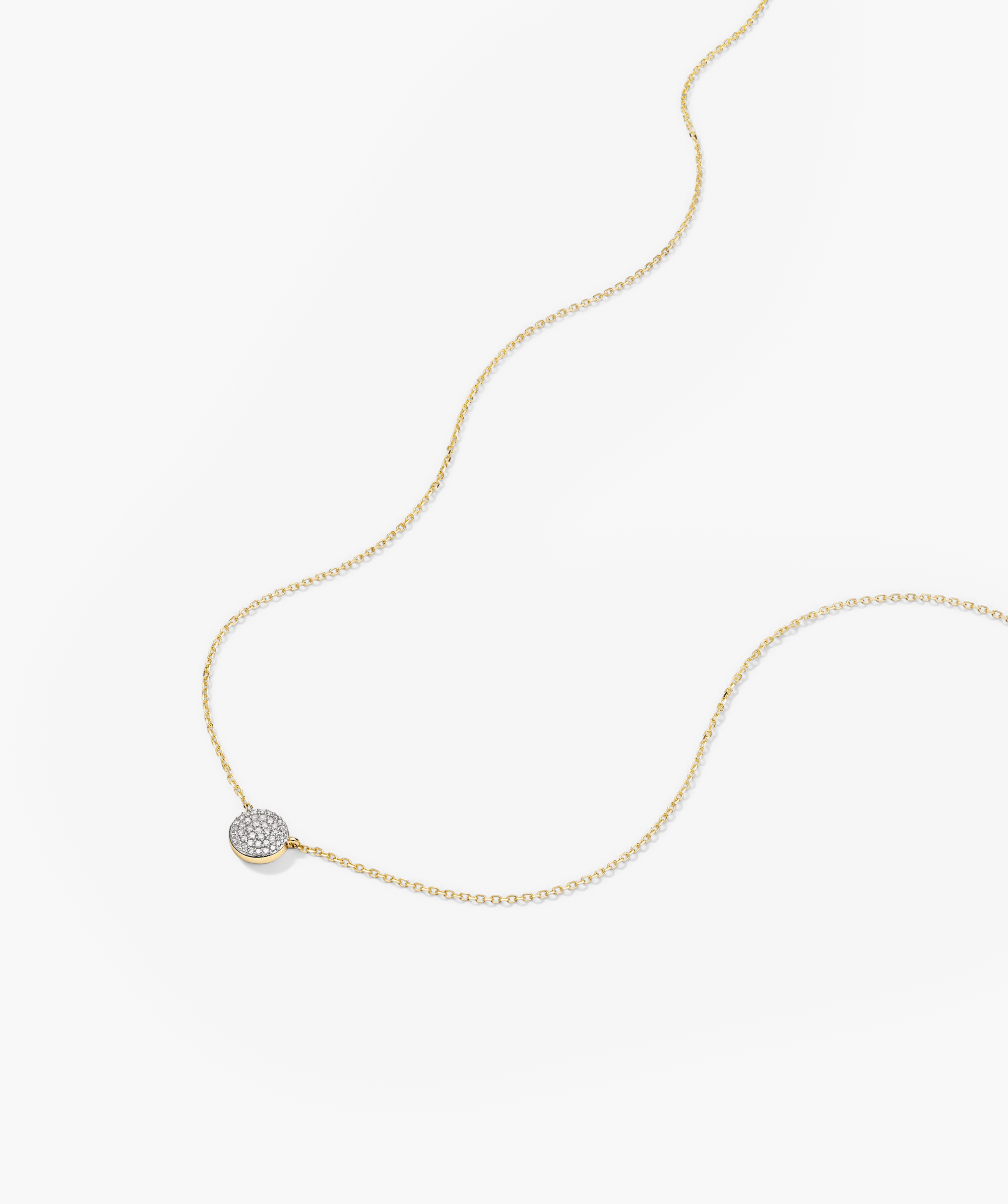 This time we said more is more—more pavé, more shine, bigger statement. Mejuri’s 14k Gold Handcrafted Large Pavé Diamond Round Necklace is set with responsibly sourced diamonds, offering a dazzling and elegant addition to your jewelry collection.
