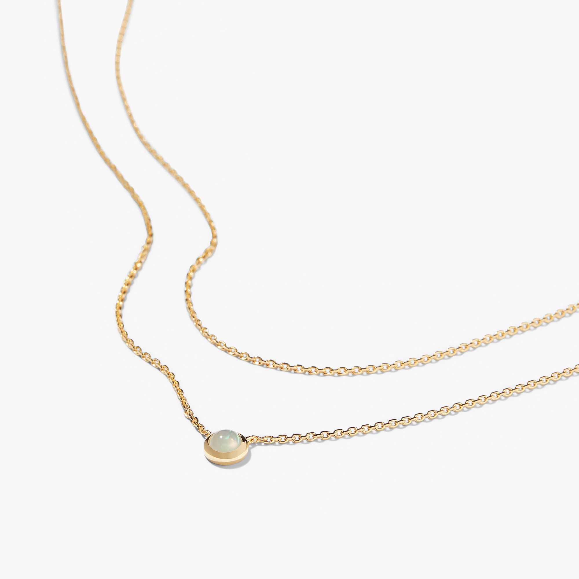 Shoo away your stacking woes with Mejuri’s Gold Vermeil Opal Pendant Necklace. This stunning piece features two chains seamlessly bound with a natural opal pendant, adding a touch of elegance and sophistication to your look. Also available in sterling silver. Shop now at Mejuri.