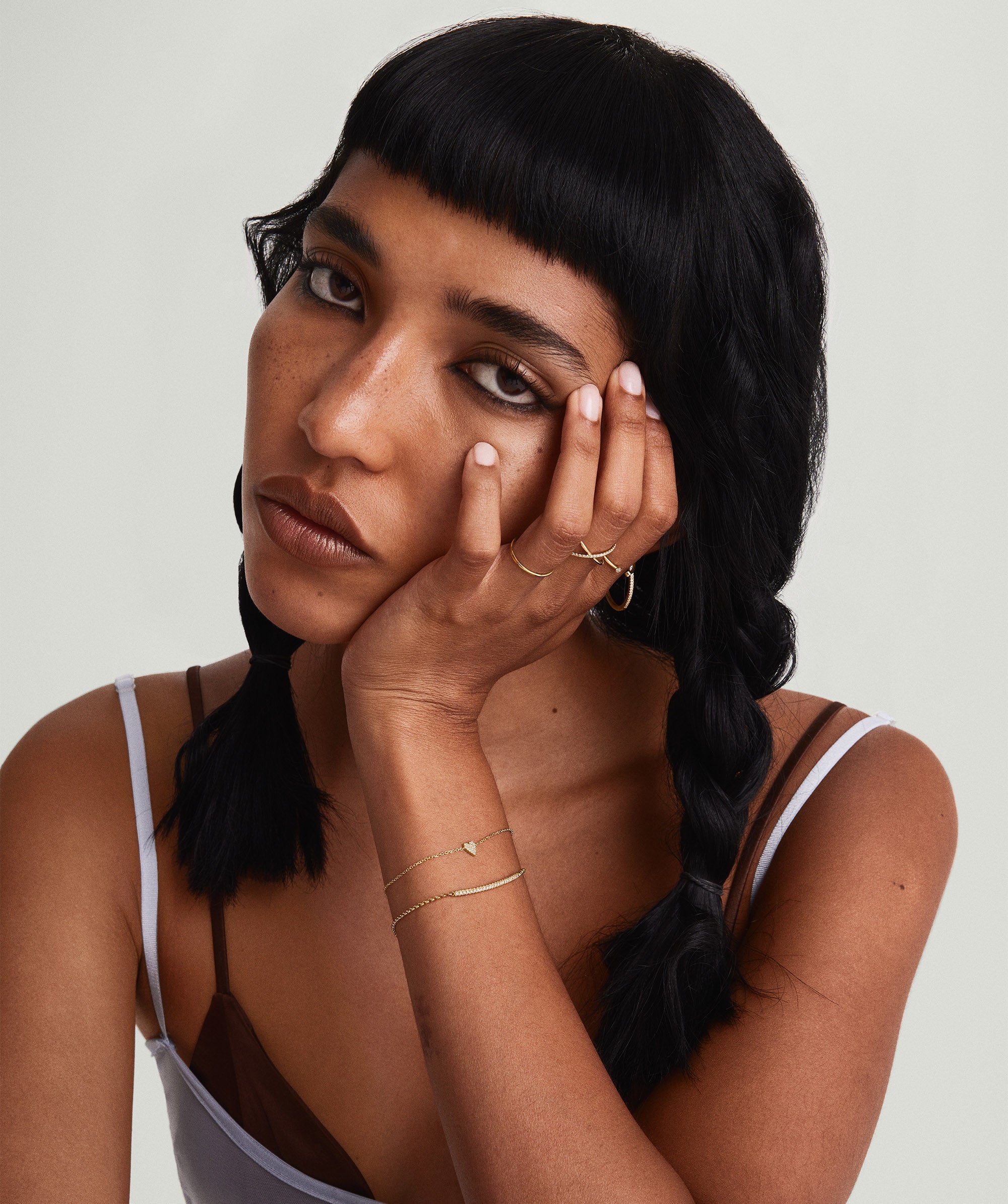 Our 14k gold pieces are made to last and perfect for everyday wear. Each piece is crafted from 94% recycled gold. 14k white gold pieces are finished with rhodium plating, giving them their signature color along with added shine and durability.