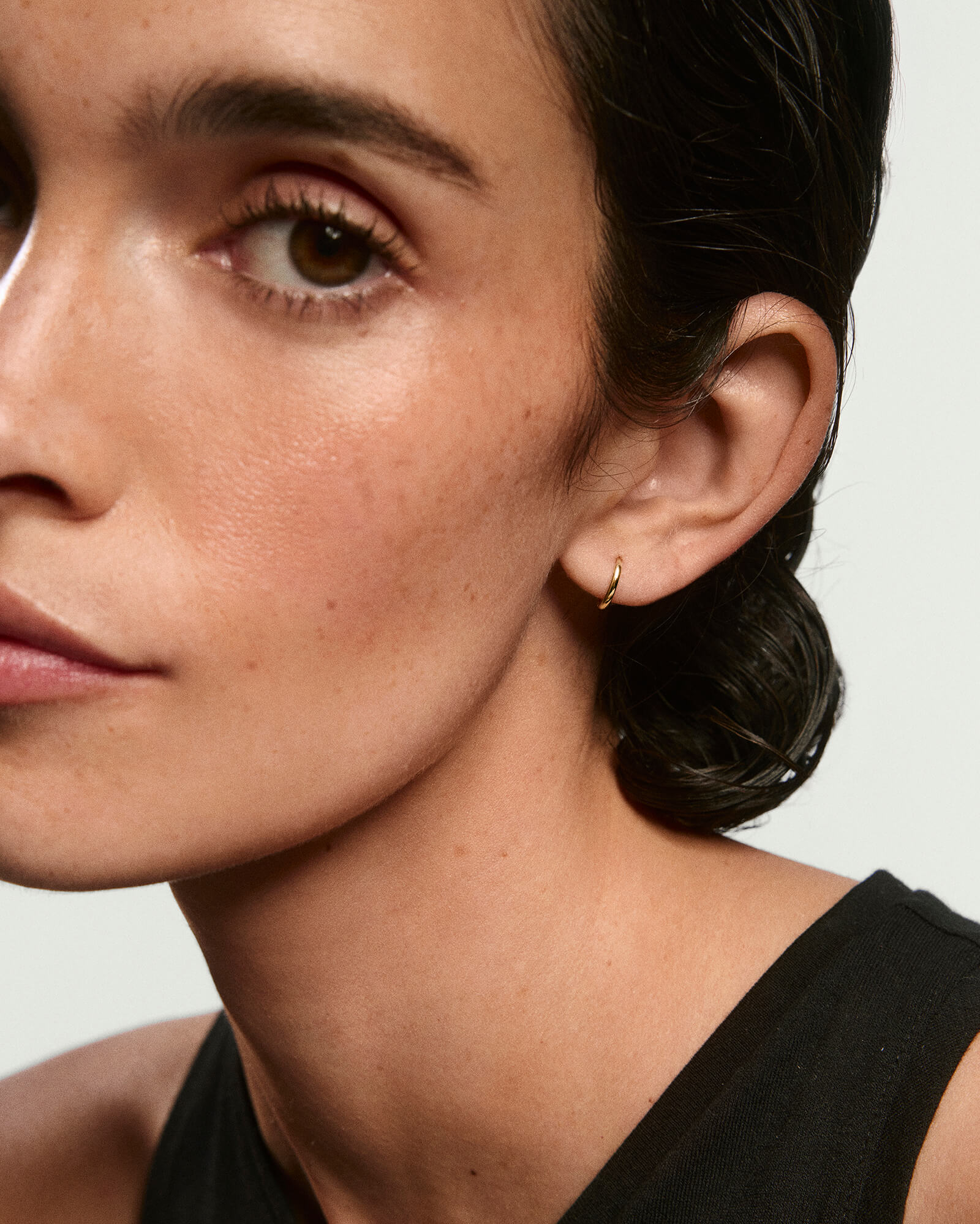 As basic as your white tee. Mejuri’s 14k Gold Handcrafted Single Mini Hoop Earring is our lightest hoop, perfect for everyday wear. Featuring a hinge clasp for easy use. Sold individually.