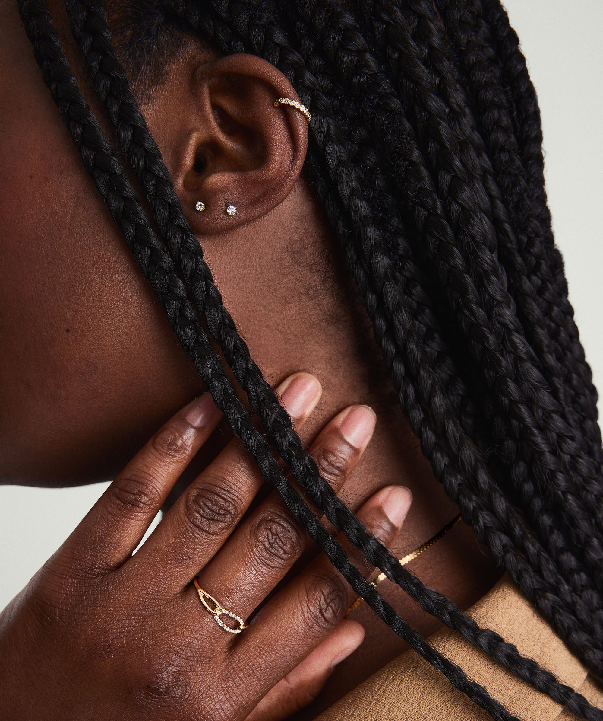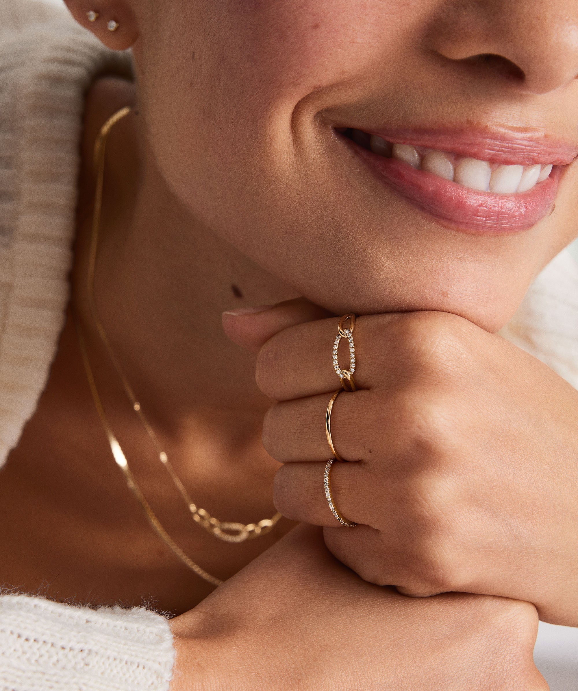 Our 14k gold pieces are made to last and perfect for everyday wear. Each piece is crafted from 94% recycled gold. 14k white gold pieces are finished with rhodium plating, giving them their signature color along with added shine and durability.