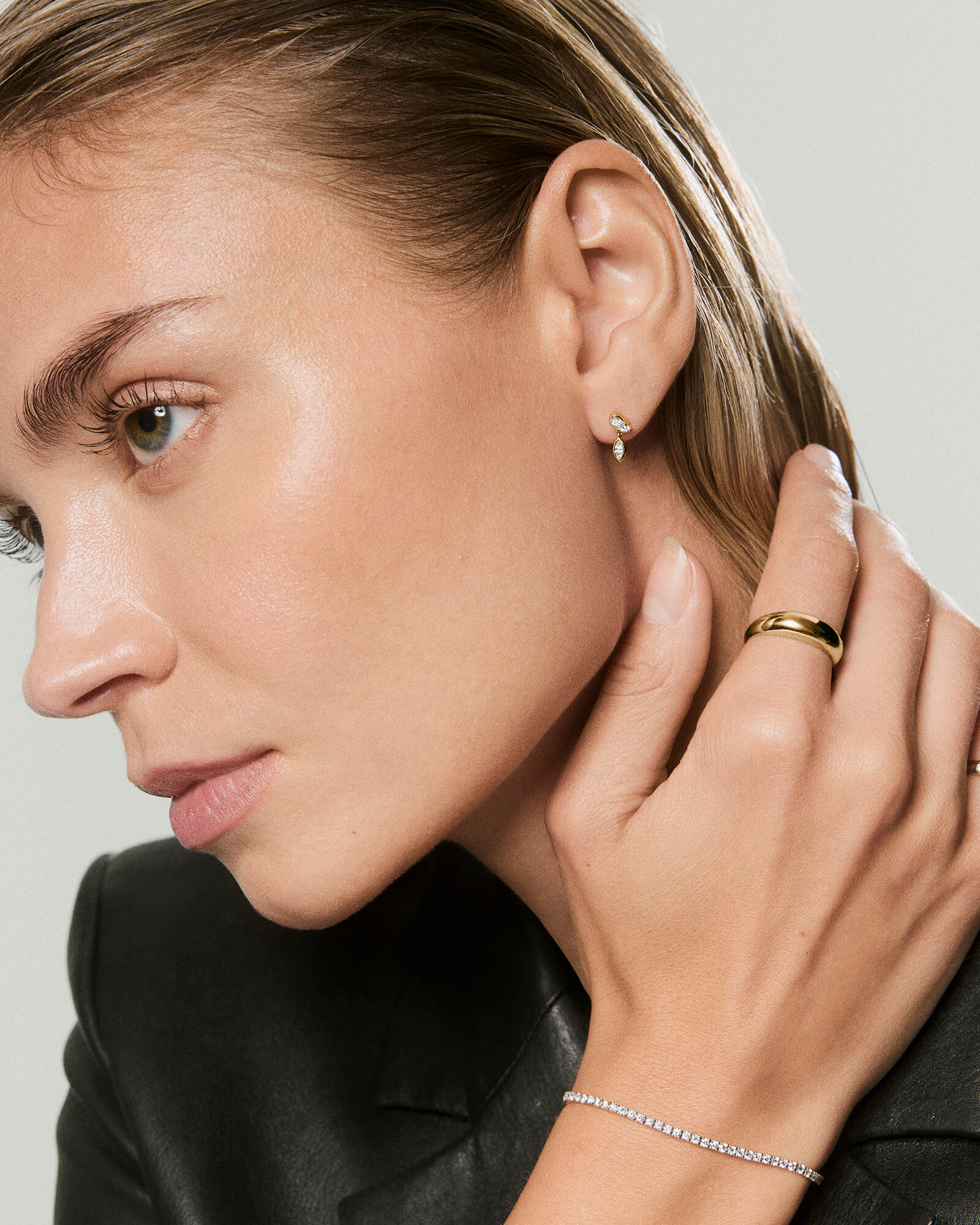 Our 14k gold pieces are made to last and perfect for everyday wear. Each piece is crafted from 94% recycled gold. 14k white gold pieces are finished with rhodium plating, giving them their signature color along with added shine and durability.
