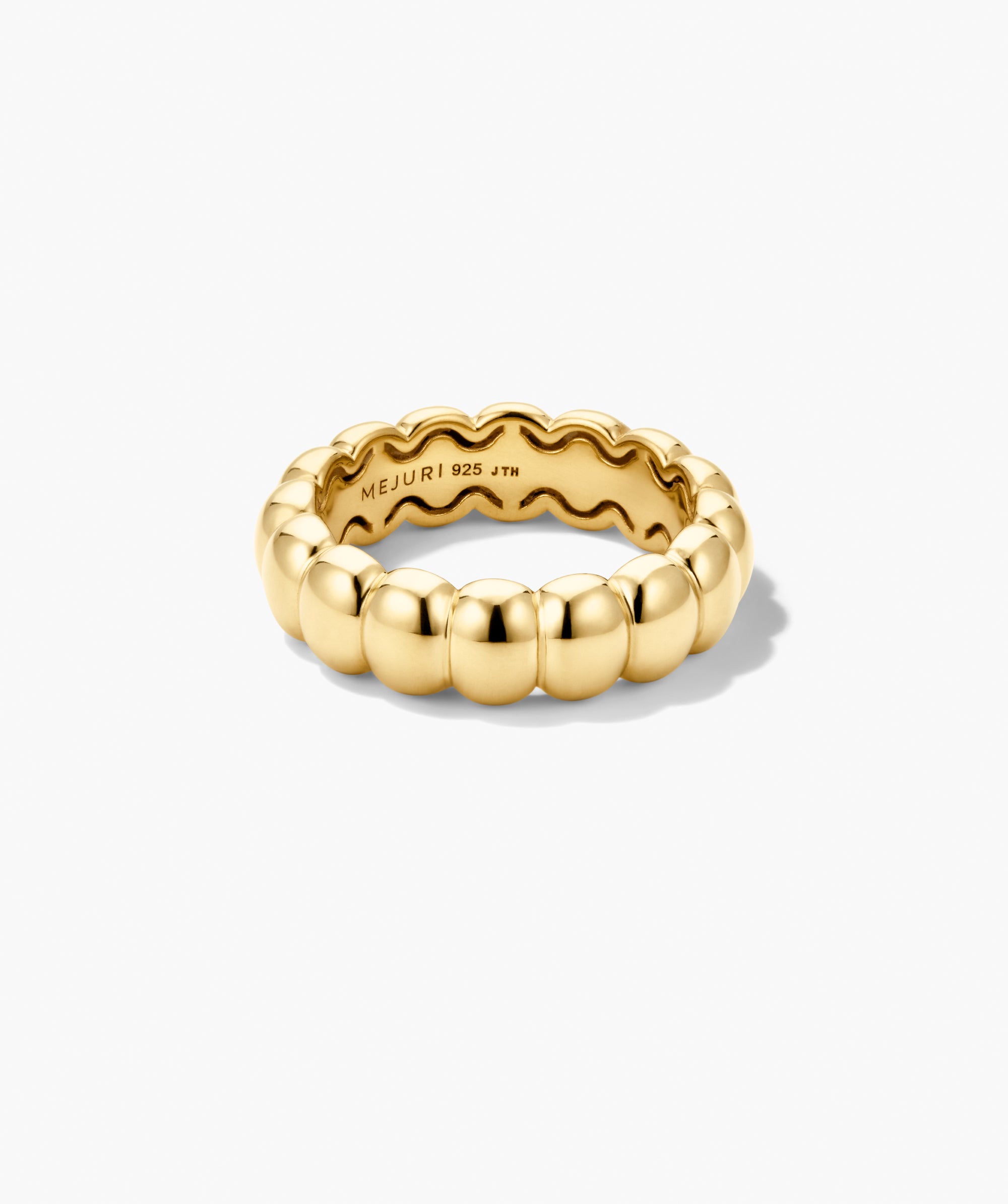 Polished by design, iconic by nature. This glossy stacker brings soft curves and bold shine, like a cloud cast in gold.