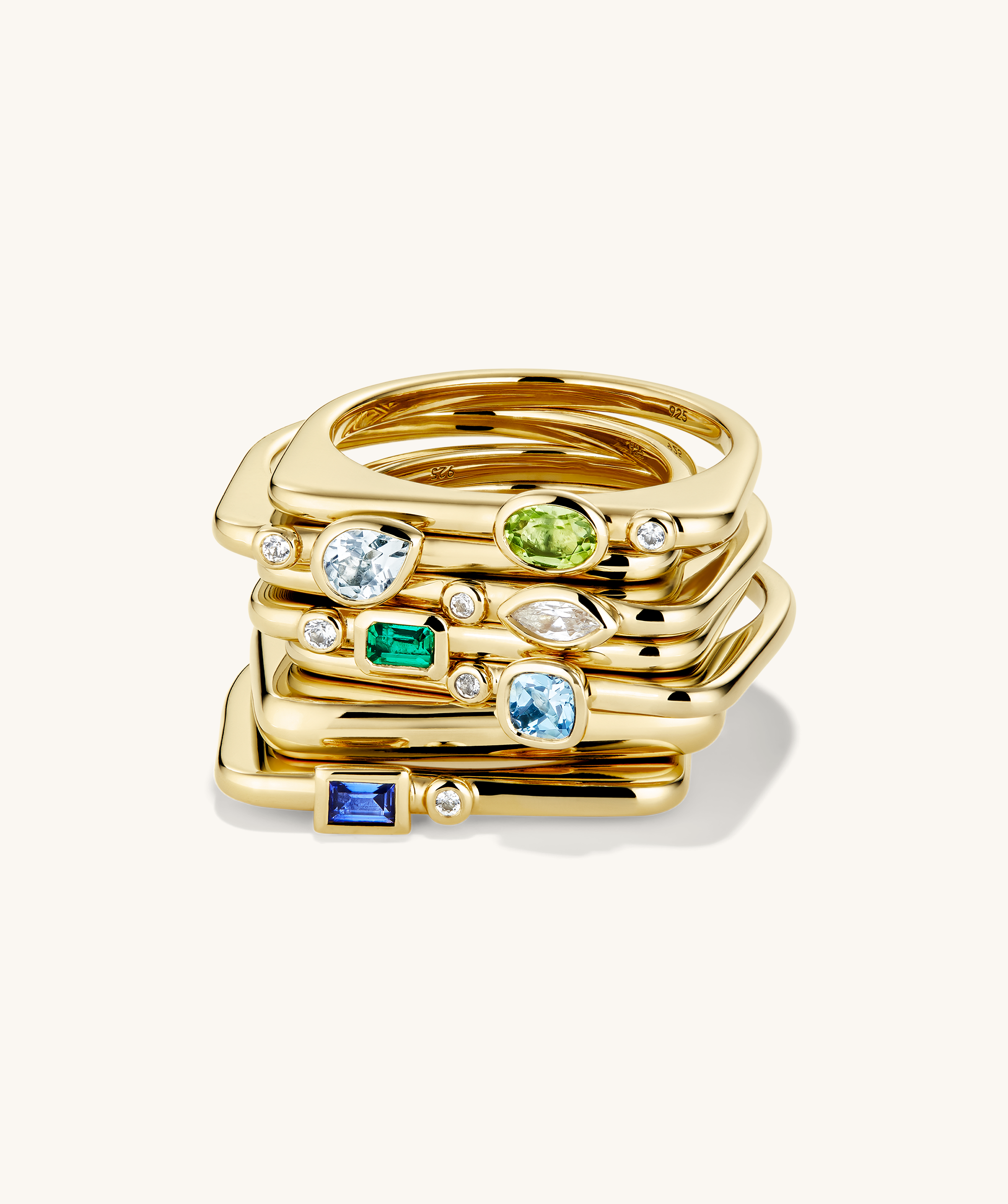 Discover Mejuri’s Puzzle Stacker Ring in 18k gold vermeil with customizable birthstone or lab grown gemstone options. Stack your personal story beautifully.