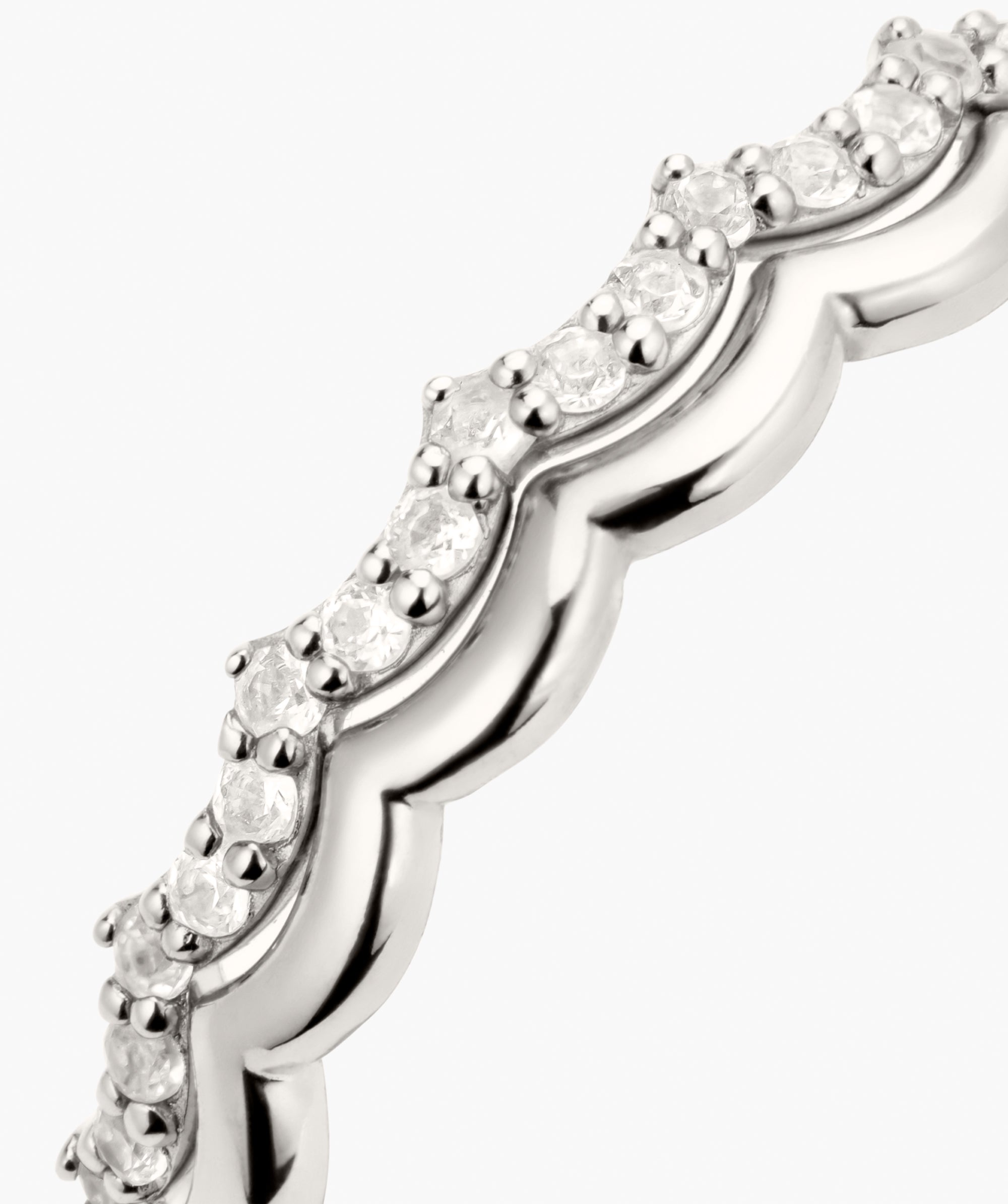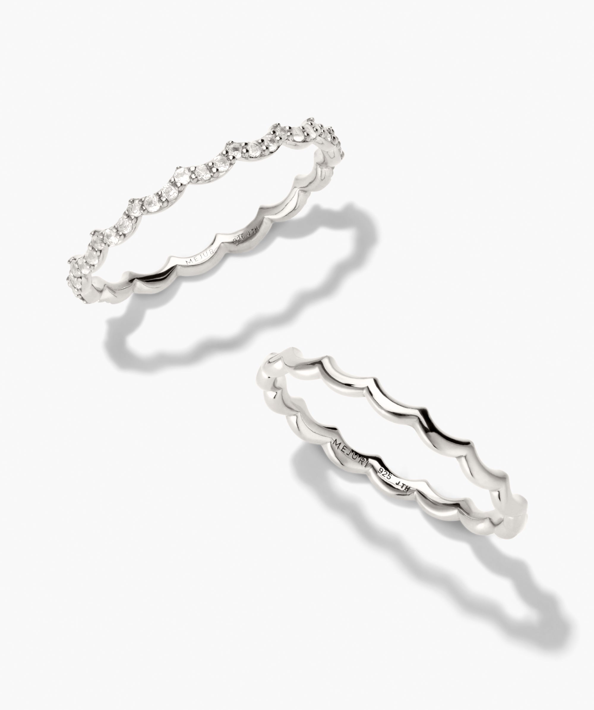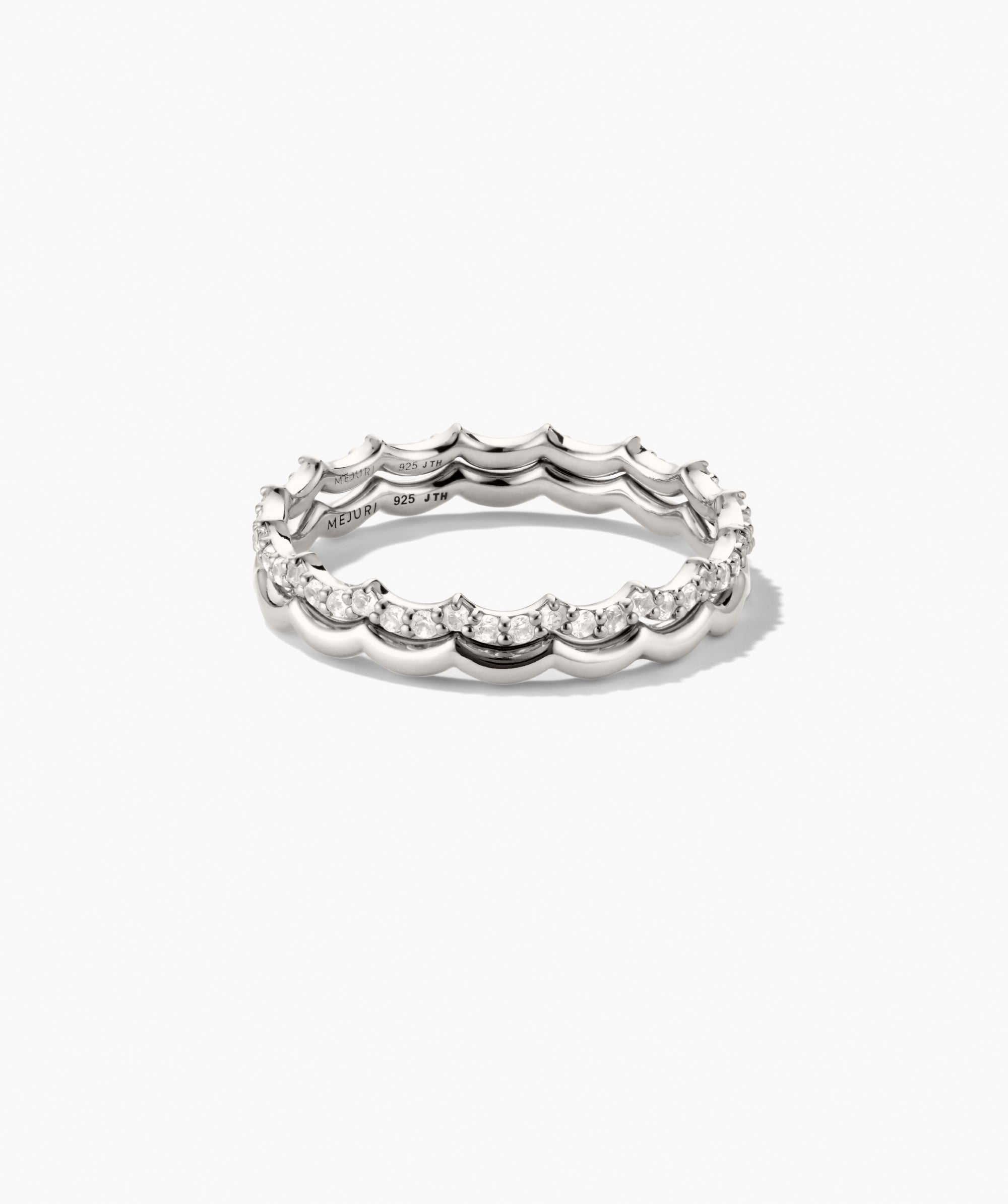 For when your stack needs a little edge. Scalloped silhouettes and lab grown sapphire accents that make it way more fun to talk with your hands.