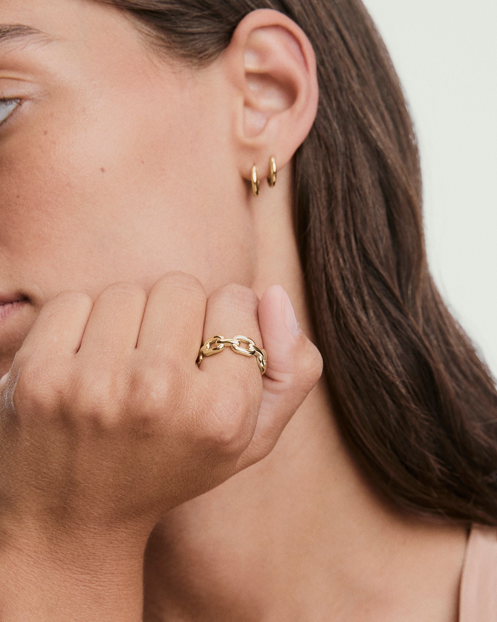 This chain-link ring does what Stevie does best: turns up, stands out, and plays well with others. Stack it or solo it. Bound to be on heavy rotation.