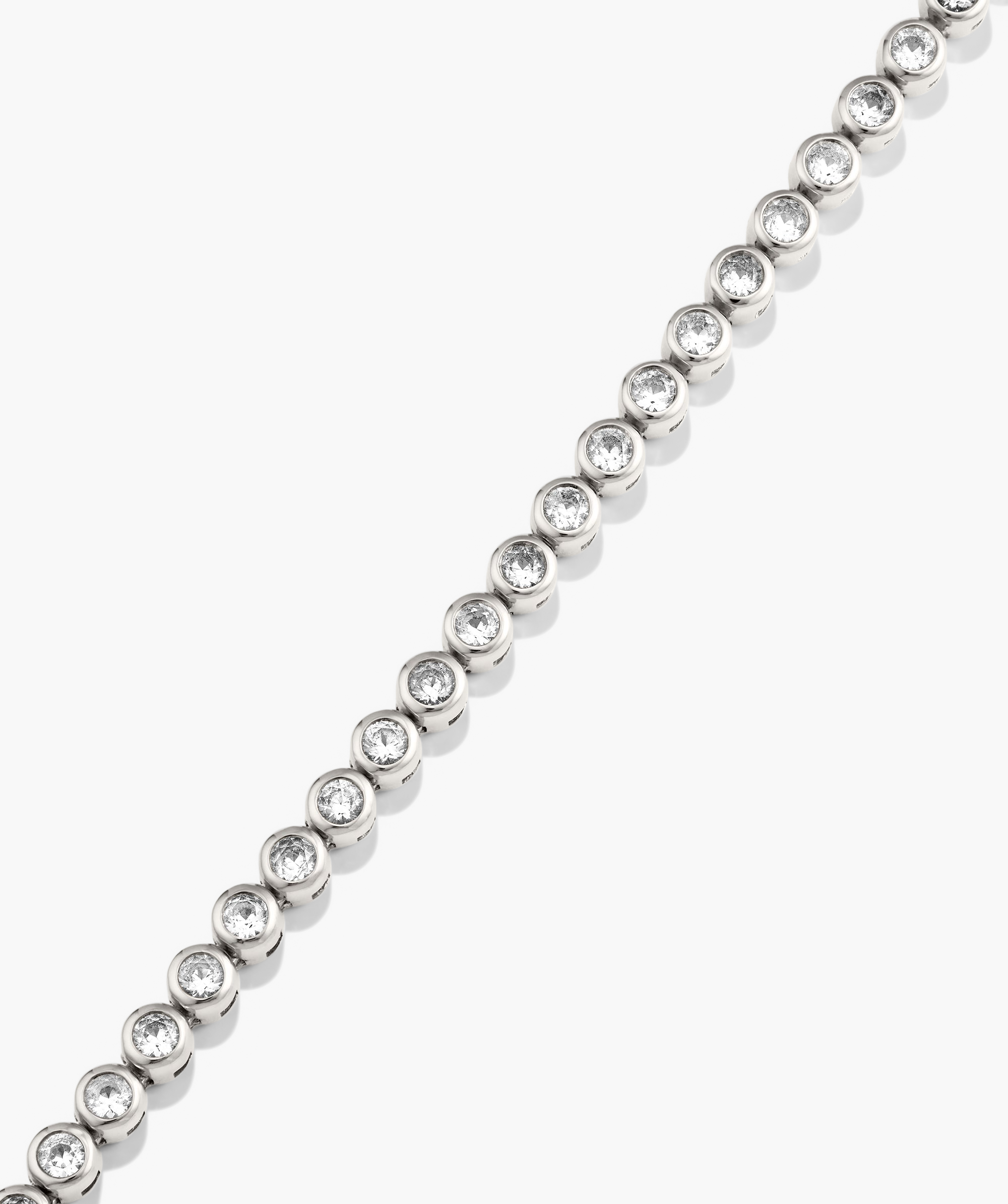 The ultimate value for shine. Our best selling lab grown sapphire tennis necklace in a bezel setting.